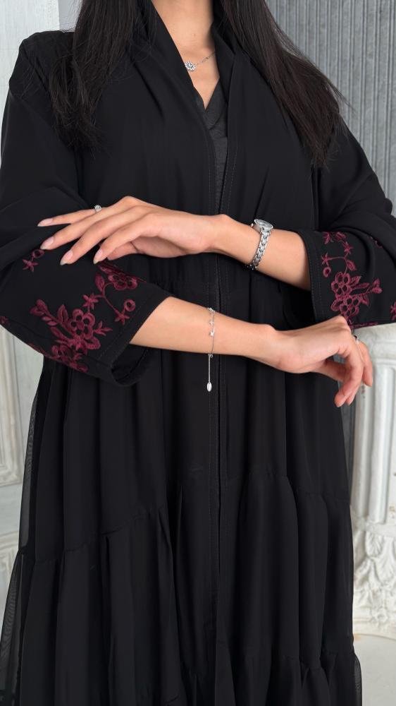 عباية شيفون بتطريز الأطراف عنابي
