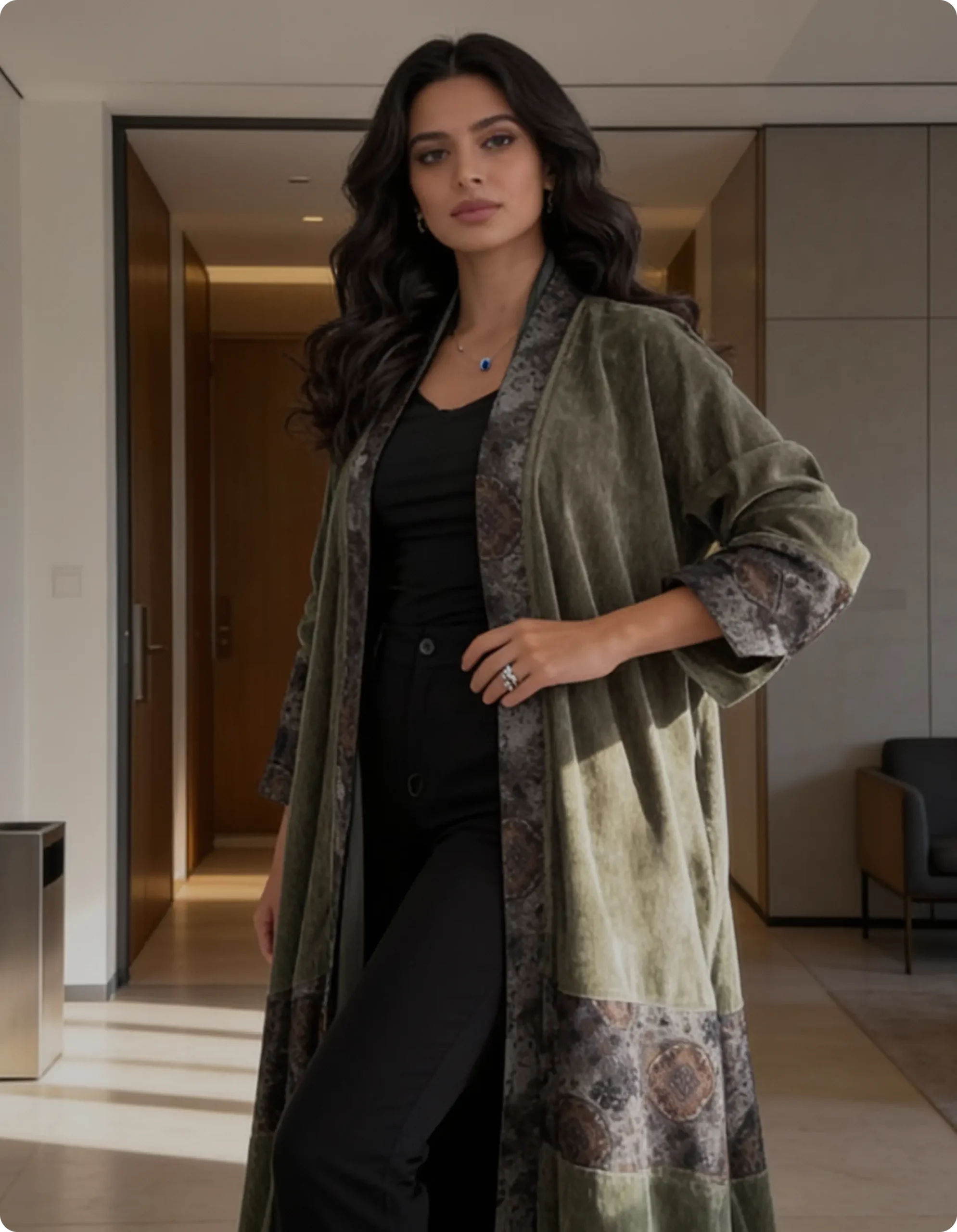 عباية قطيفة بتصميم أنيق