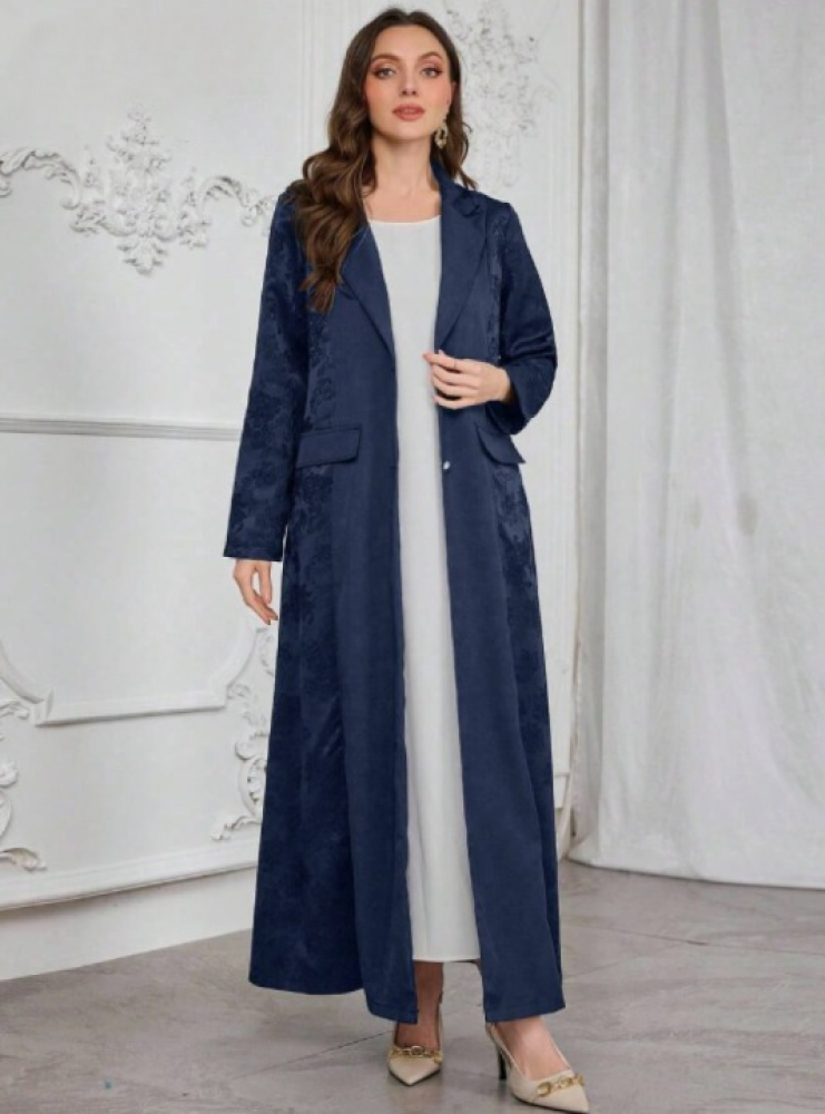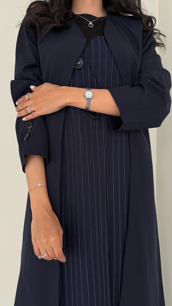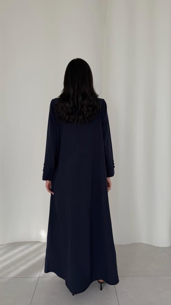 عباية بليزر كريب وكتان كحلي