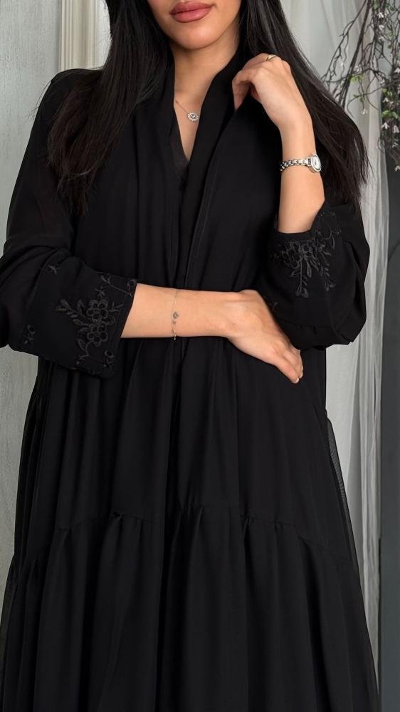 عباية شيفون بأكمام مطرزة