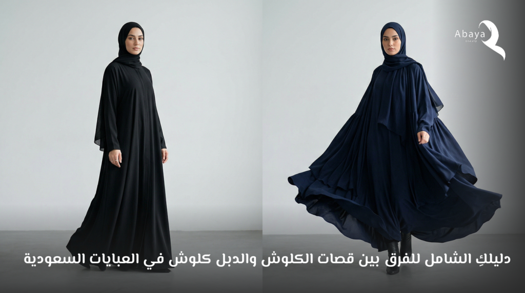 دليلكِ الشامل للفرق بين قصات الكلوش والدبل كلوش في العبايات السعودية.