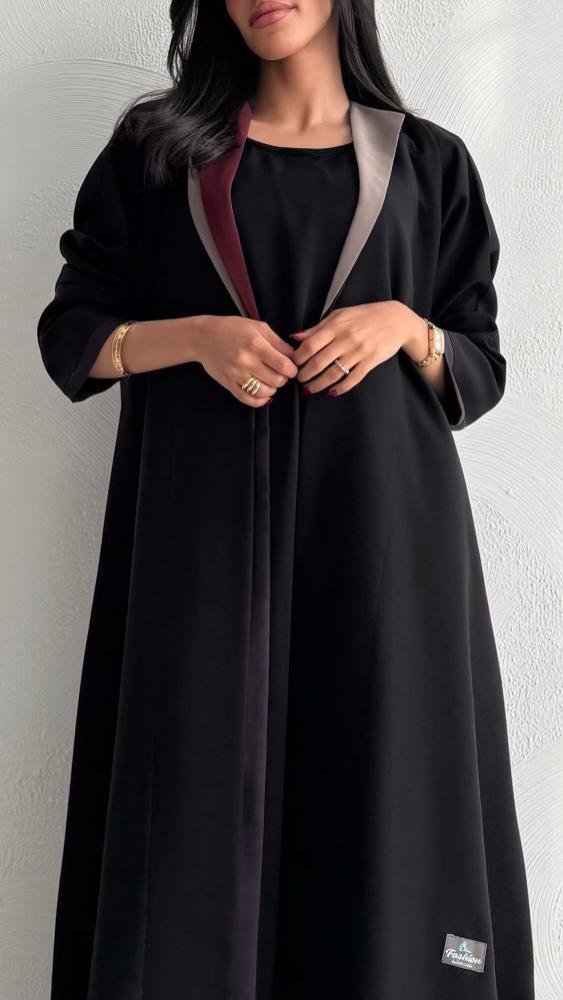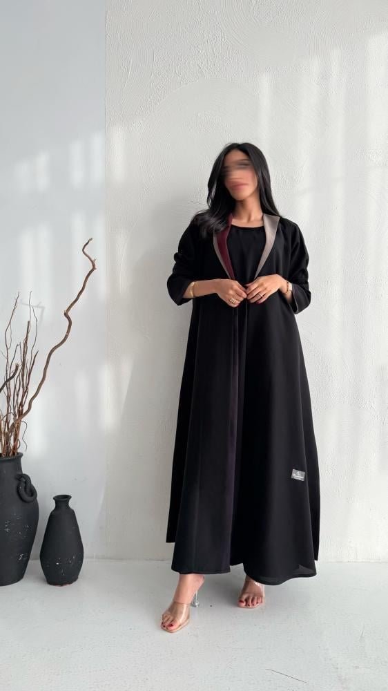 عباية كتان بياقة أنيقة