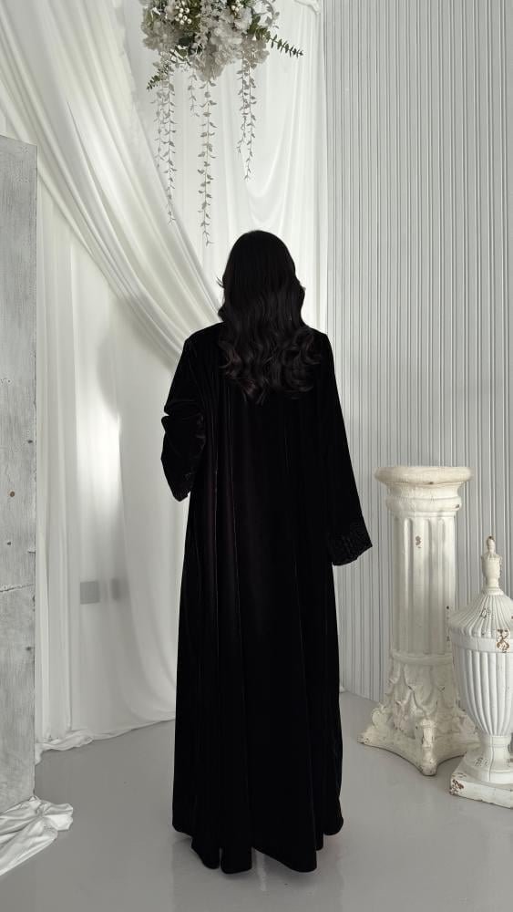 اختاري الآن عباية مخمل كوري أسود من متجر عباية بيوتي وتمتعي بإطلالة أنثوية فاخرة تجمع بين الراحة والفخامة في كل مناسبة.